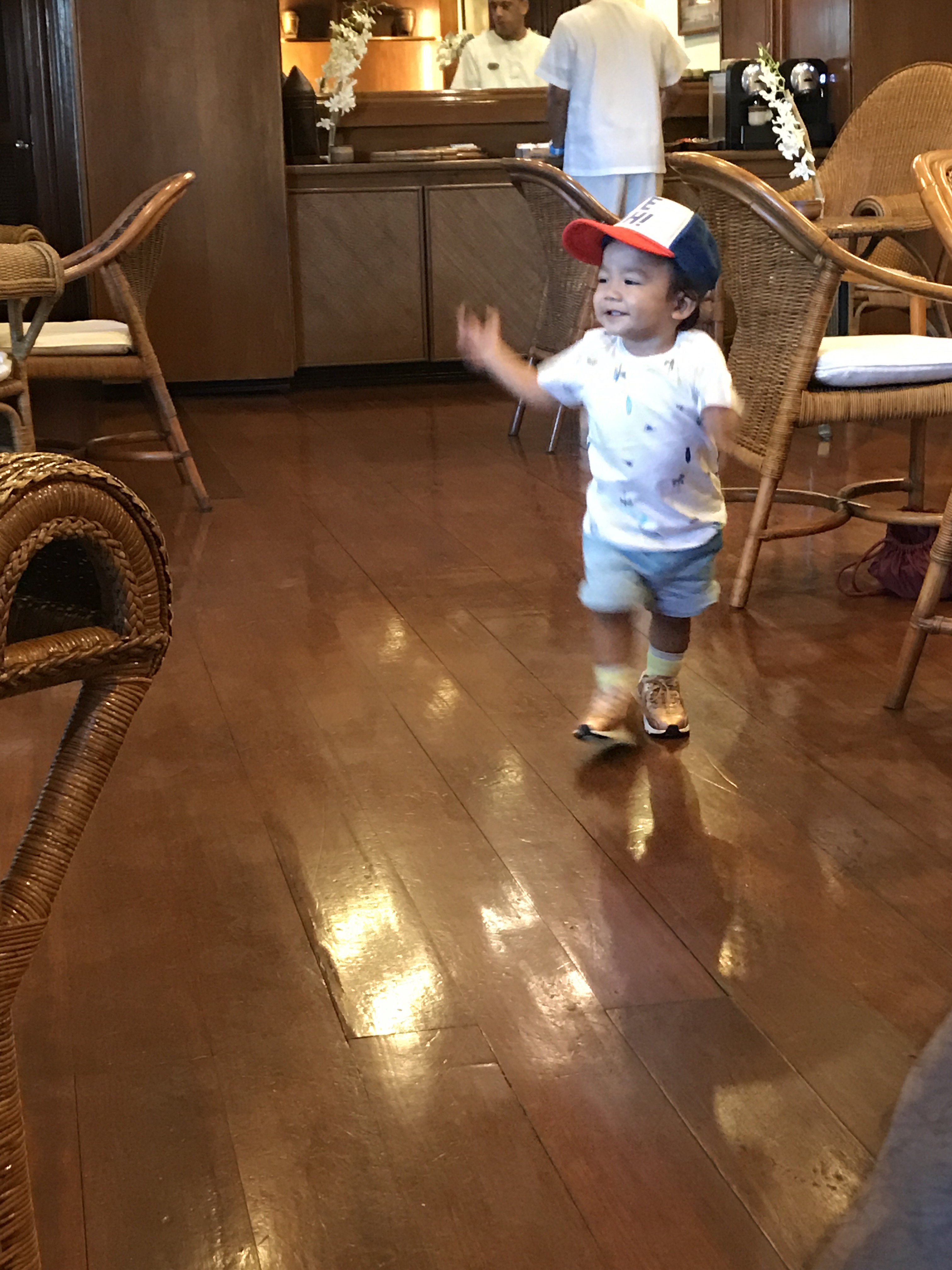 Pablo now running around the hangar lounge before departure