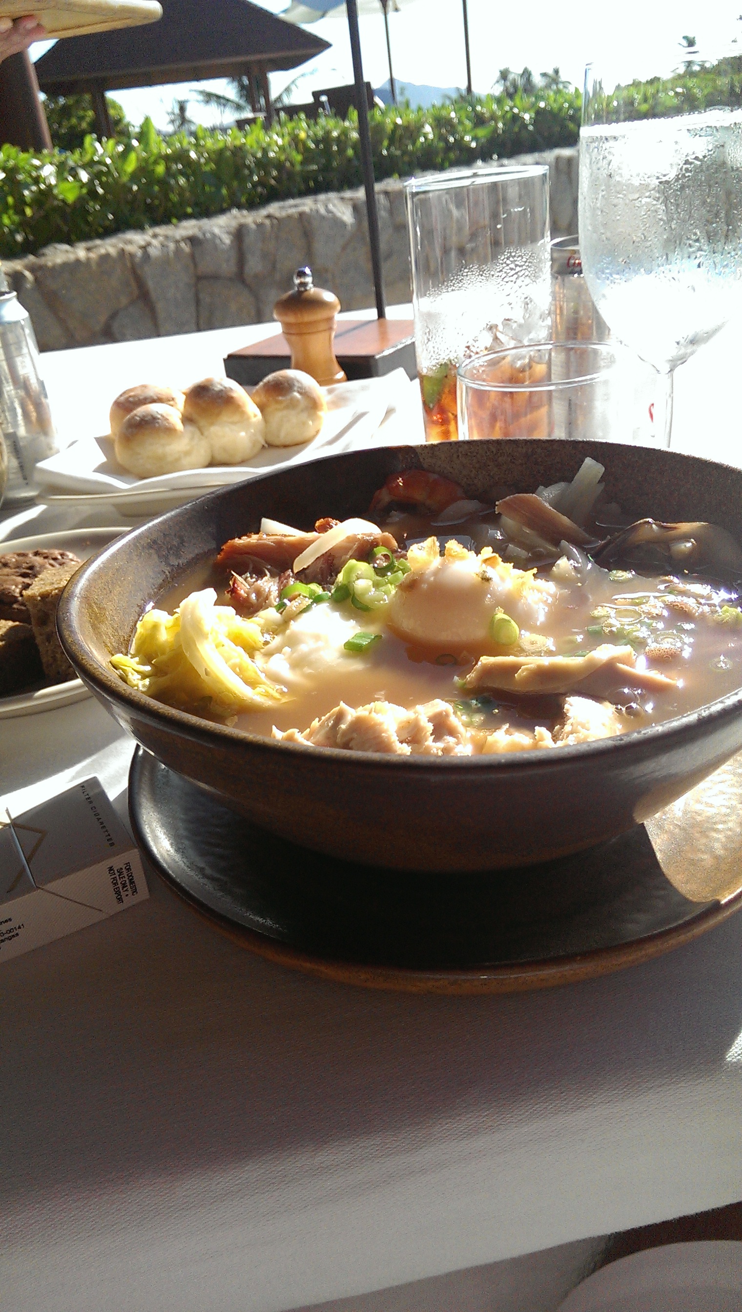 We had lunch back at the Clubhouse. Well, actually more like snacks. Whenever Rhex and I are at the beach, our meal times are off by three hours. So we had lunch at around four in the afternoon. We discovered what we consider the best (yet most expensive!) batchoy in the country at Amanpulo. Forgot to take a picture of it, but at Php800 per bowl + 22% surcharge and tax, they exert effort to make it worth your money. Their batchoy is yet the most complete batchoy meal we’ve ever had. With squid, lechon, pork cracklings, egg, chicken shreds, and veggies + the rich broth, this batchoy is a complete meal. We loved it.