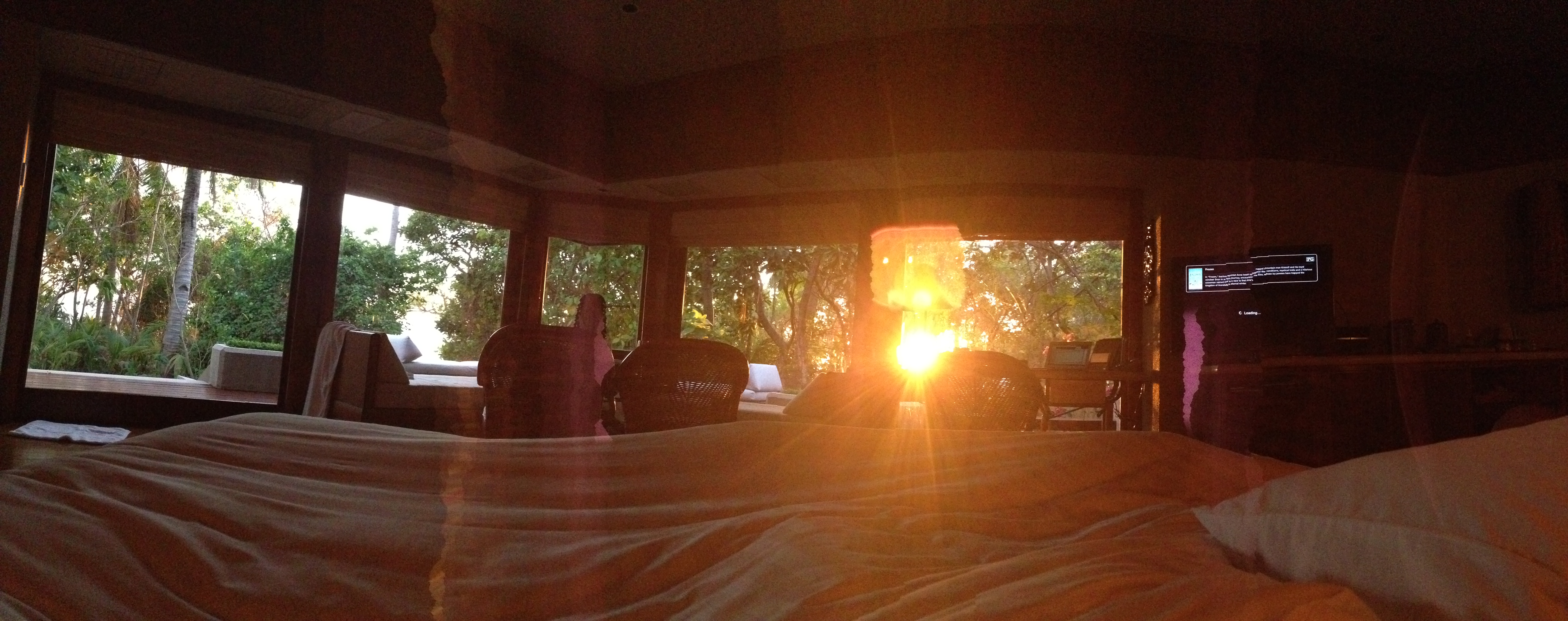 We then returned to our casita to enjoy the sunset from our bed facing the sea. Both walls facing the sea have an unadulterated view of nature making it the perfect venue for lazing around. These casitas were designed by world renowned Architect Francisco Mañosa, the same architect that designed The Coconut Palace and boy he has a fine taste indeed. These casitas do not scream luxury, but keeps the design temperament subdued, classic and yet so very refined. You will not see any of those tacky designs that most pretentious places have nowadays. Each casita has a Samsung Smart TV, a Bowers & Wilkins Wireless speaker that you can use to Airplay your iPhone to via the dedicated wifi hotspot per casita. We actually brought our Apple TV with us hoping we could use the lazy hours to watch Netflix or Hulu Plus, but the internet connection was too slow for it. We tried watching Frozen which we bought from the iTunes Store, but it said it would take forever before it started playing. So we chose the luxury of doing nothing until the sun gave way to the night.