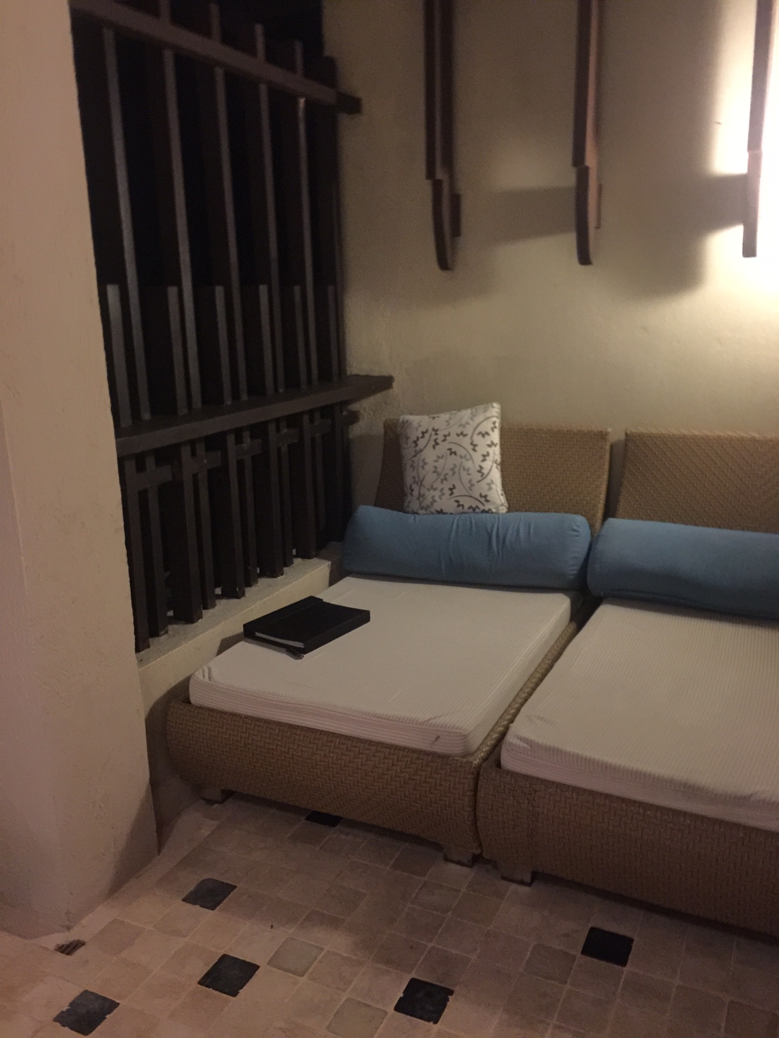 The hotel binder which I used the night before for in-room dining was still on the daybed in the balcony.